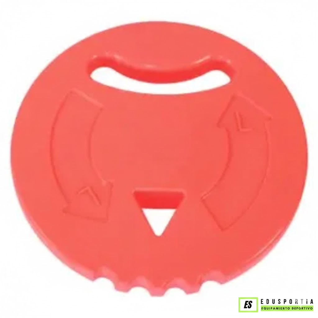 Cada disco cuenta con tres agarres diferentes, permitiendo progresar en la técnica según el nivel del usuario. Además, incluyen flechas que señalan la dirección correcta del giro: la letra L indica el sentido para lanzadores diestros y la letra R para lanzadores zurdos, facilitando el aprendizaje de manera intuitiva.