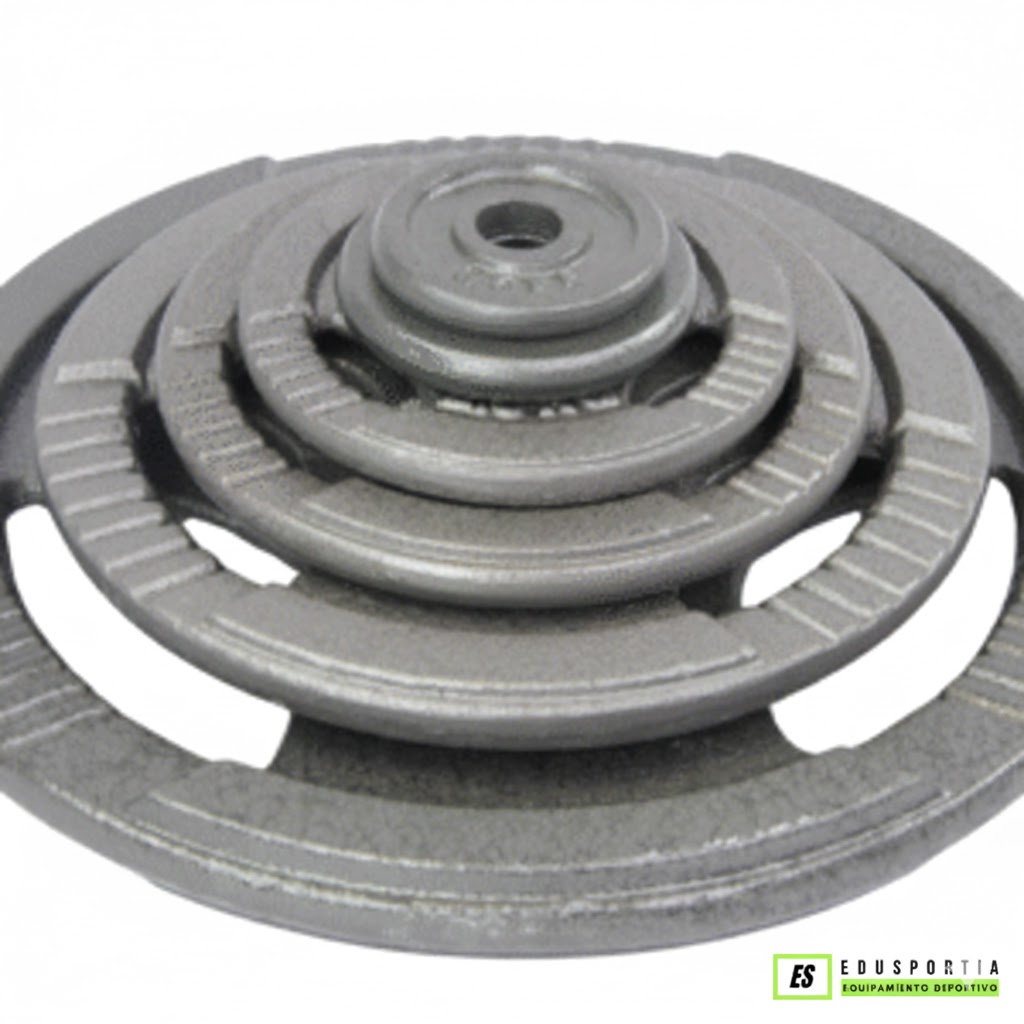 Los discos de 1,25, 2,50, 5, 10 y 20 Kg. disponen de tres zonas de agarre que facilitan su manipulación.