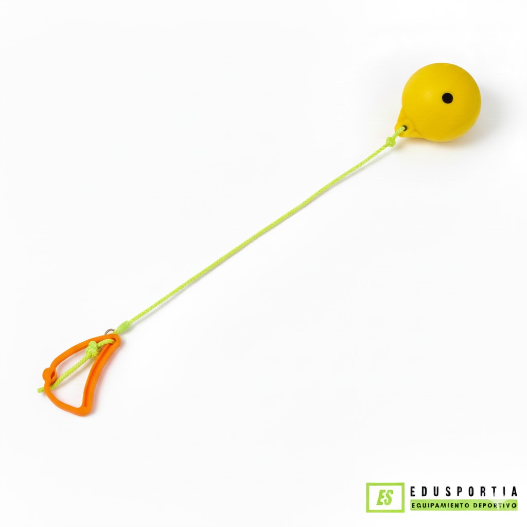 Cuenta con bola soft, cuerda resistente y asa ergonómica, facilitando un agarre cómodo y un impulso adecuado durante el lanzamiento. Se sujeta por el asa para realizar el movimiento completo de rotación y lanzamiento.